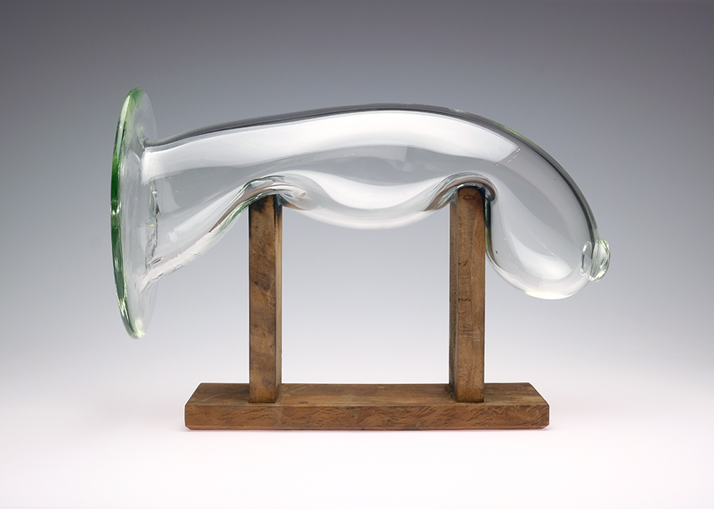 Bioreactors are designed with extremely tight tolerances and built for very specific applications. This reaction chamber was designed with experimental form and biology in mind. The tube was allowed to react to its supporting stand by using gravity to help shape the glass in its soft and molten state. In the absence of its counterparts and biological stirrings, this virgin chamber has yet to blow its maximum load.
